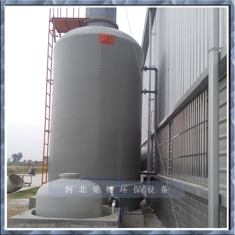 塔內氣體由風機送入,氣體由下向(xiàng)上。吸收(shōu)液由耐酸泵打入塔頂,通(tōng)過布液裝置(zhì)均勻向下噴淋,形成逆(nì)流吸(xī)收,中和後的氣體經(jīng)塔內除霧段後,經煙囪排入大氣。不同(tóng)的酸性氣體采用(yòng)不同的吸收液體吸收。